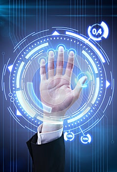 Technology scan man's hand for security