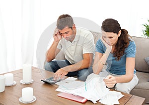 Desperate couple doing their accounts
