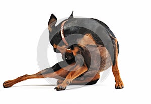 Miniature pinscher scratching
