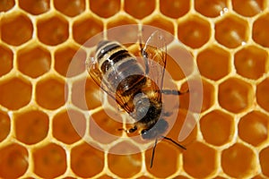 Bee on honeycomb
