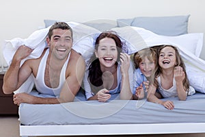 Family having fun in bed