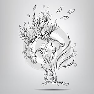 A horse with a mane of branches