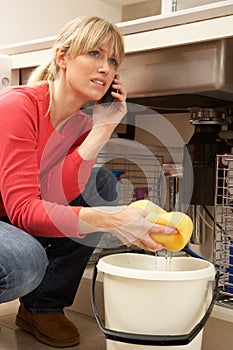 Woman Mopping Up Leaking Sink