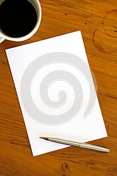 Blank Paper Pen and Coffee