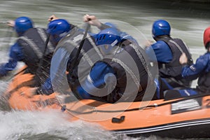Teamwork in a rafting boat