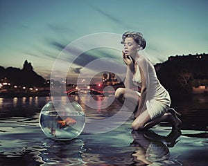 Beauty lady with gold fish