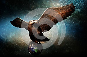 Bald eagle flying above the clouds