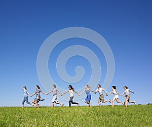 Group Holding hands running