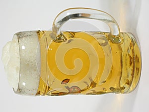 Hand holds syringe and chicken in background. Antibiotics, vaccination concept.