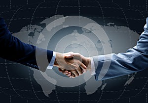 Handshake with map of the world in background