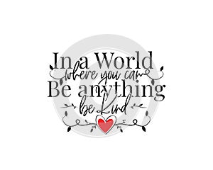 In a world where you can be anything, be kind, vector. Wording design, lettering. Motivational, inspirational positive quotes