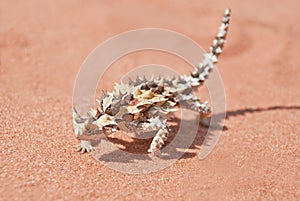 Thorny Devil with shadow on red outback sand
