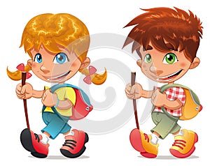 Trekking boy and girl.