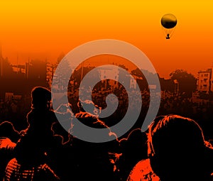 Flight above crowd on a balloon