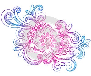 Outline doodle flowers for adult coloring book. Beautiful floral background for color artwork. Monochrome zentangle