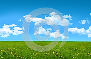 Green field, blue sky and white clouds