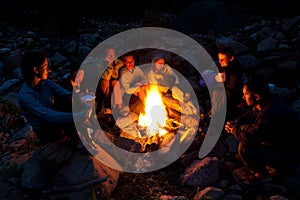 People near campfire in forest