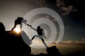Climber helping & mountaineering activities