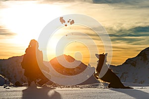 Girl plays with border collie