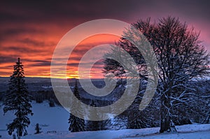 Beautiful sunset in winter mountain landscape