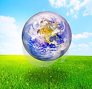 Earth globe over beautiful landscape