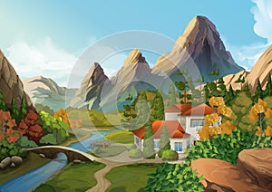 Cartoon nature country landscape