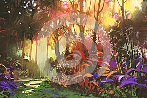 Beautiful forest with sunlight