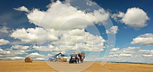 Tractors at harvest and beautiful landscape