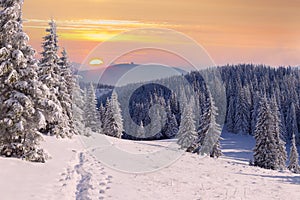 Beautiful winter sunrisein mountains.