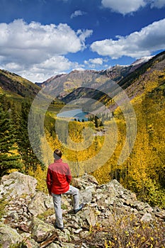 Beautiful girl on mountain lake