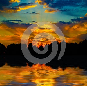 Beautiful sunset in the forest
