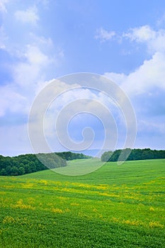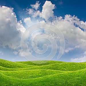Blue sky and green grass meadow