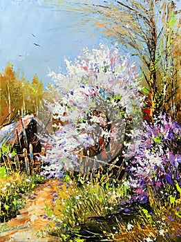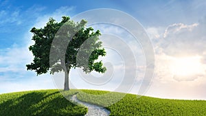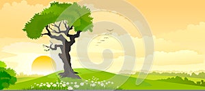 Lonely tree in spring landscape
