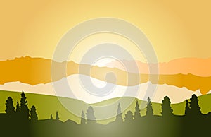Vector mountain landscape, sunrise