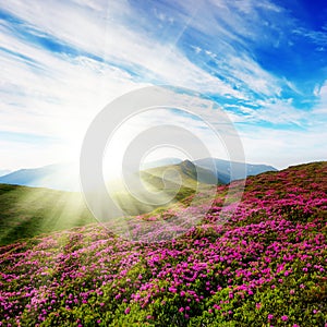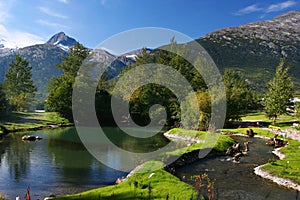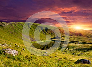 Summer mountain landscape with flowers and alpine lakes, Transylvania, Romania