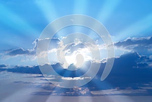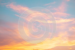 Orange,pink sunset ,blue sky backdorp. Beautiful natural of blue sky with clouds abstract or background. Soft image