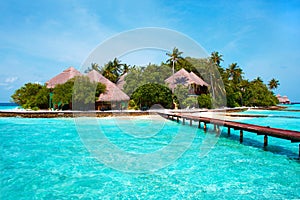 Scenic tropical beach with palm trees at sunset background, Sri Lanka