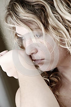 Pensive Woman Blue Tint